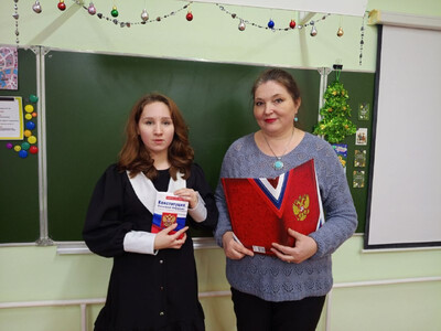 12 декабря — знаменательная дата в истории России. В этот день в 1993 году был принят основной закон страны — Конституция Российской Федерации. Учитель истории совместно с лектором Российского общества «Знание» в 9-11 классах нашей школы провели урок, посвящённый Дню Конституции и её основным положениям. Ребята вновь обратили внимание на Конституцию нашей страны, её историю, поговорили о правах и обязанностях граждан. В начале мероприятия учащиеся ознакомились с историей принятия Конституции, какие события предшествовали этому значимому моменту, и как прошло голосование. Была представлена презентация, в которой были рассмотрены символы Российской Федерации — герб, флаг и гимн, а также ключевые статьи Конституции, касающиеся прав человека и разделения властей. Ребята активно участвовали в обсуждении, высказывая свои мысли о значимости Конституции в жизни каждого гражданина и её роли в формировании современного общества. Во время мероприятия была проведена правовая викторина «Я и закон», она позволила проверить знания основных положений Конституции и закрепить усвоенный материал. «12 декабря — День Конституции» стал не просто уроком по изучению основного закона страны, но и стимулом для учащихся к более активному и сознательному участию в жизни российского общества.