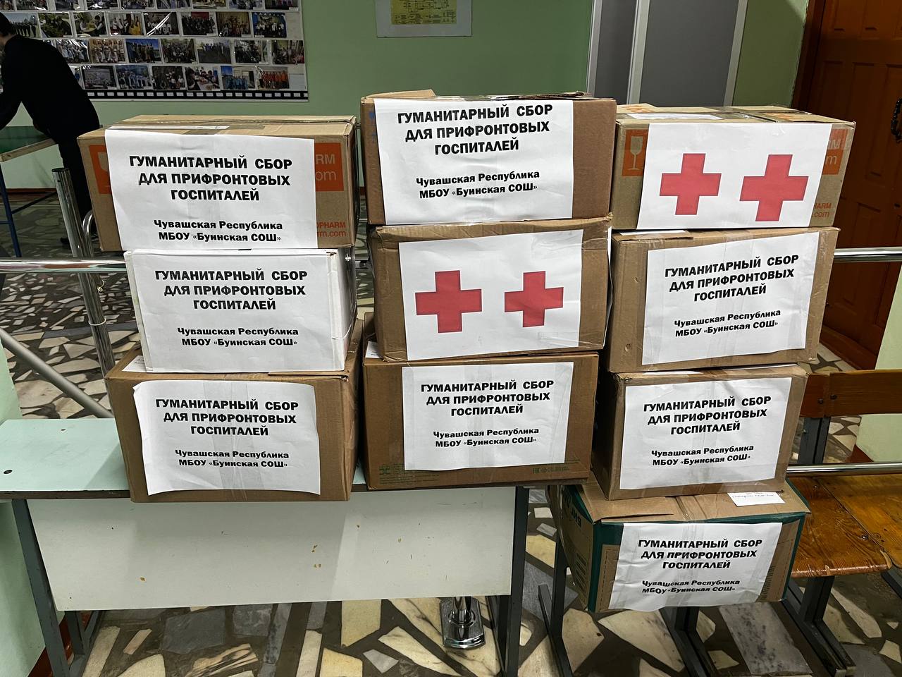 Педагоги, работники, обучающиеся МБОУ «Буинская СОШ» Ибресинского муниципального округа активно приняли участие в сборе гуманитарной помощи для прифронтовых госпиталей.