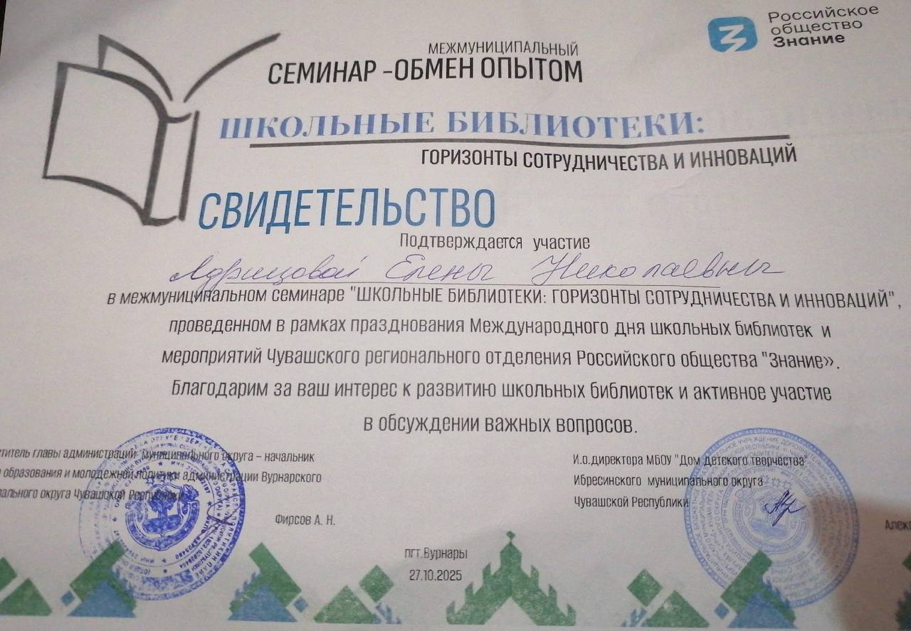 28 октября 2025 года в Вурнарской центральной библиотеке состоялся межмуниципальный семинар- обмен опытом на тему "Школьные библиотеки: горизонты сотрудничества и инновации", приуроченного к "Международному дню библиотек "
