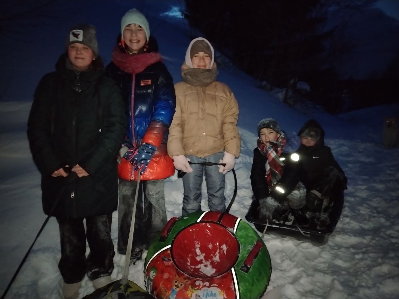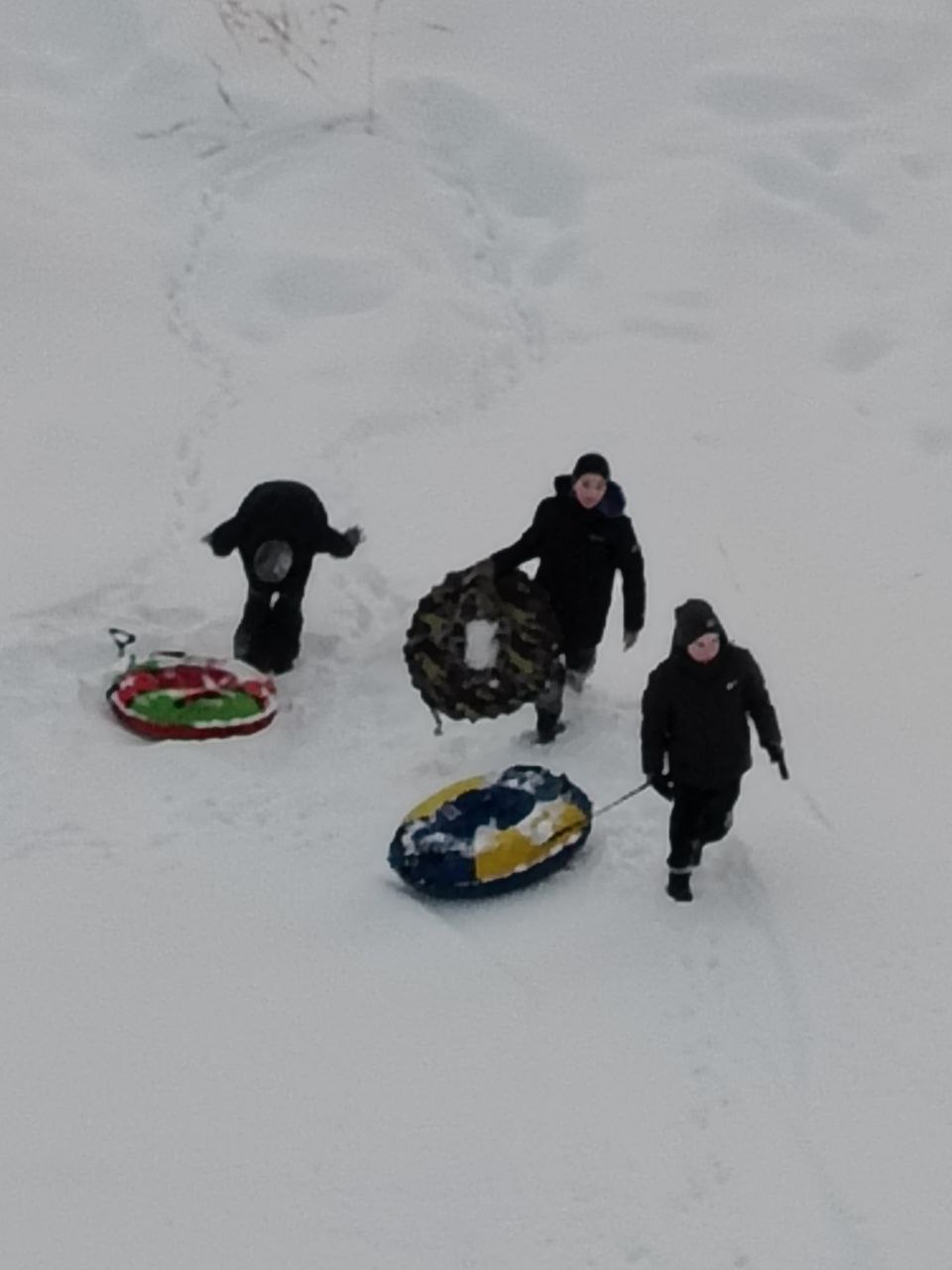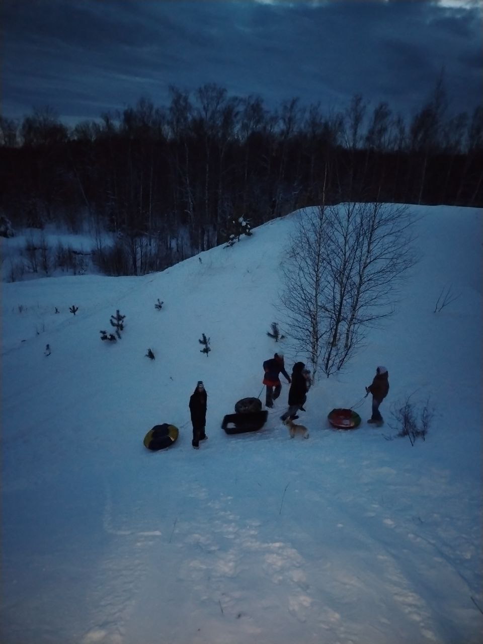 "Три Горы" ждали нас. Ученики 6 класса на Старый Новый год решили осуществить своё желание: покататься на ватрушках, покувыркаться на мягком снегу (он очень мягкий, только выпал). Очень весело, немного страшно. Главное, есть горячий чай, приятно погреться... А красота какая, небо чудное, настроение замечательное. Здоровья набрались!