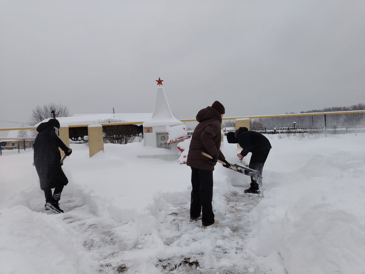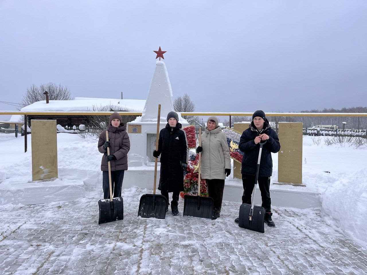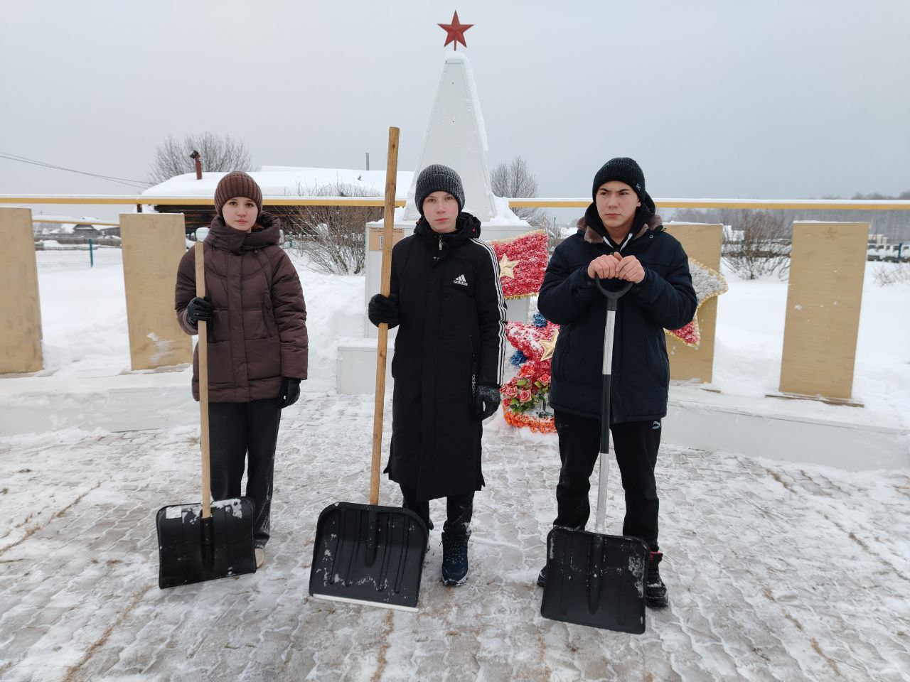 После вчерашнего снегопада учащиеся 8 класса — Бочкарев Д., Дворникова Е. и Сангатулин М. — совместно с учителем технологии Васильевой Т. В. приняли участие в акции «Снежный десант». Сегодня ребята вновь показали пример активной гражданской позиции и уважения к памяти предков. Школьники оперативно очистили территорию вокруг обелиска павшим героям Великой Отечественной войны.