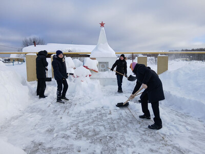 Особое внимание было уделено памятной площадке, посвященной девушкам-зенитчицам, и обелиску павшим воинам в Великой Отечественной войне. Этот мемориал, символ мужества и самопожертвования, требовал бережного ухода. Учащиеся с особой тщательностью расчищали снег вокруг обелиска, стараясь не повредить хрупкие элементы и сохранить достоинство этого священного места. Их усилия были направлены не просто на уборку, а на проявление уважения к памяти героев, отстоявших свободу страны.