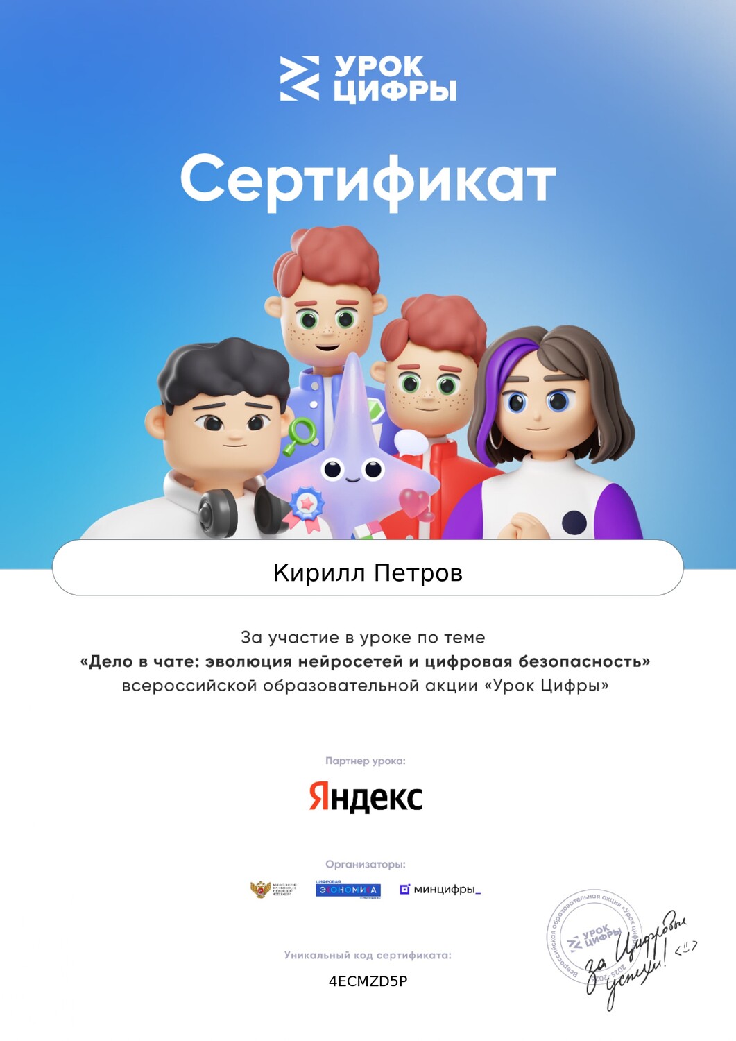 В эти первые дни декабря в нашей школе проходит захватывающий "Урок цифры", посвященный теме, которая волнует каждого из нас – эволюции нейросетей и цифровой безопасности!